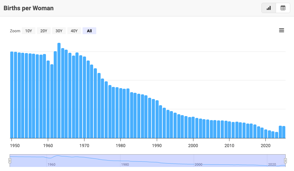 At the same time, birth rates are dropping globally—to about 2.40 in 2025, below replacement levels in many places.